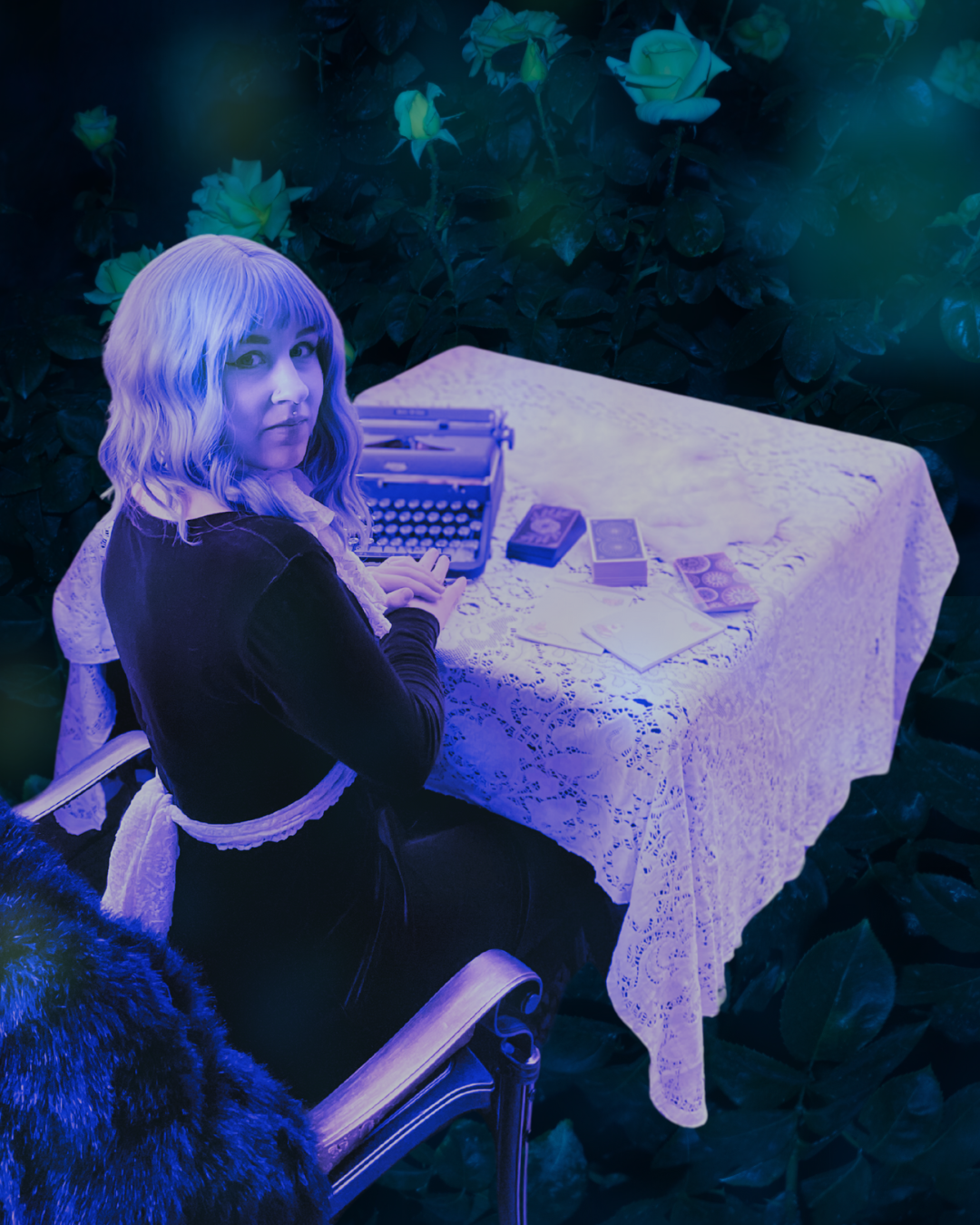 Features a mini-oracle card reading of about 3-5 minutes where guests select a card, and give a prompt (theme or word) that they want their poem to embody.